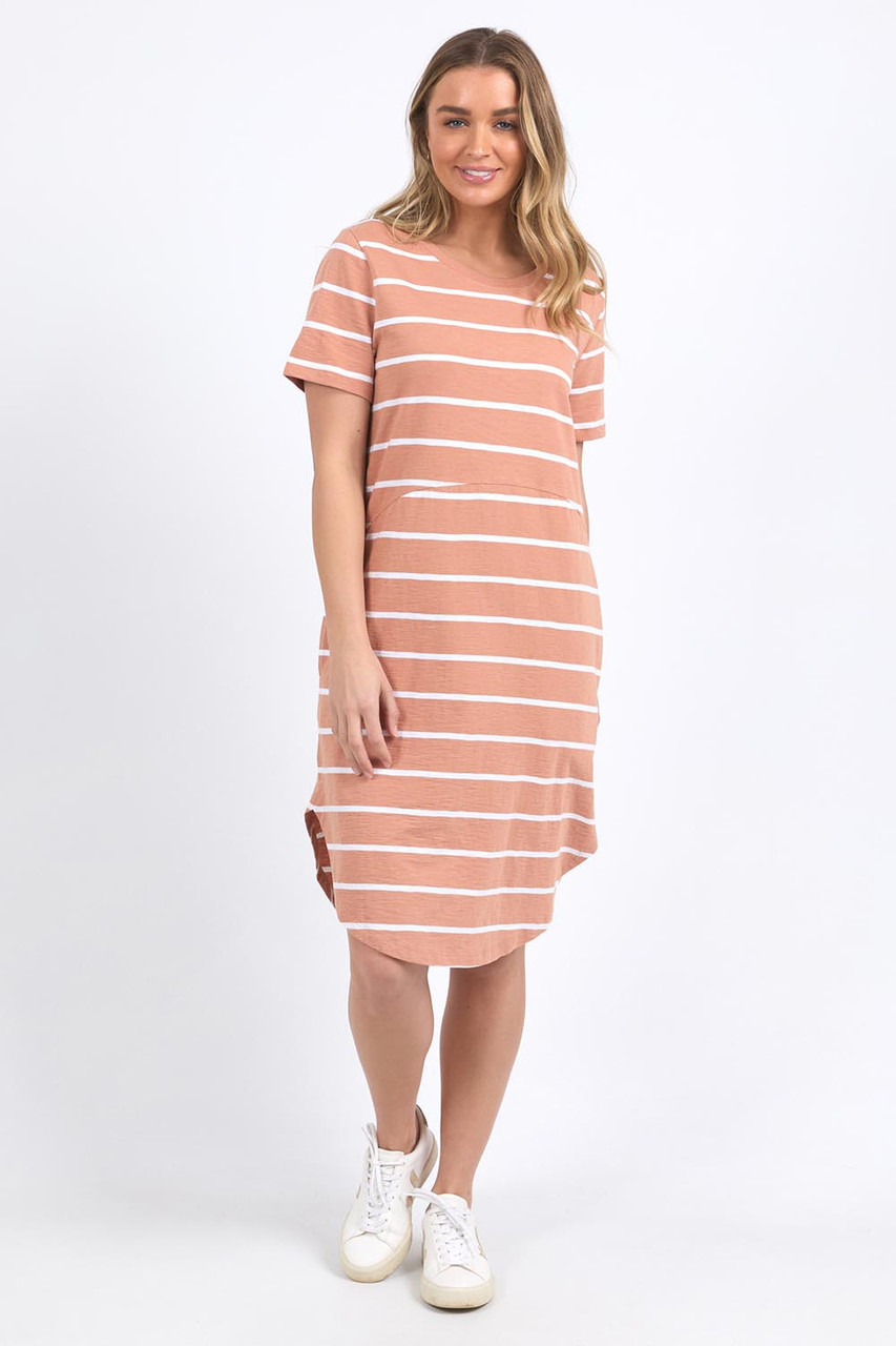 Easy and ready to spend the summer with you, we welcome the Elements Bay Stripe Dress from Foxwood into our essentials range. 100% cotton, this relaxed tee dress style features a round neckline, short sleeves, and curved seam waist for the illusion of a two-piece set. Side pockets add to the practical feel of the design, simply add sandals or sneakers to complete the look. Love, Sas and your wardrobe wingbirds x